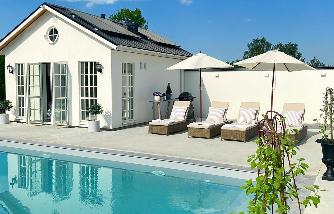 – När vädret tillåter är det här min favoritplats. Vi älskar att umgås kring poolen – både som familj och med vänner. Det blir avslappnat med bad, sol och lite grill, perfekt för både ungdomar och vuxna.